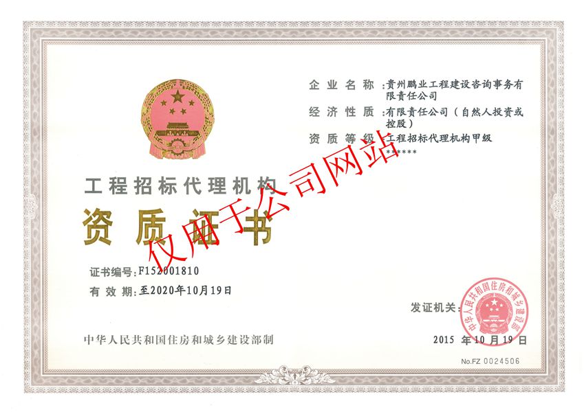 工程招標(biāo)代理甲級資質(zhì)證書
