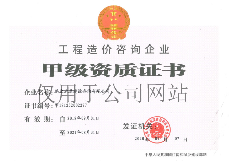 工程造價咨詢甲級資質(zhì)證書